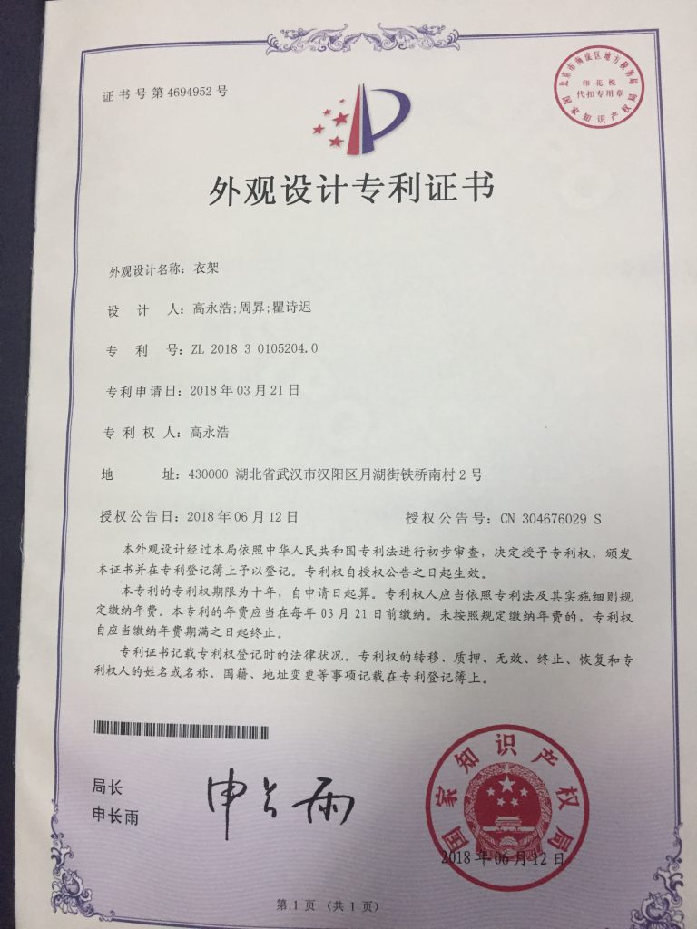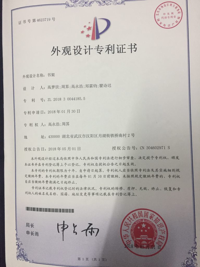 大学两年期间,学了很多,做了很多,也得到了很多,付出总会有回报这句话始终激励着我,下面这三项国家外观设计专利证书也是我大学两年来生活的见证者!