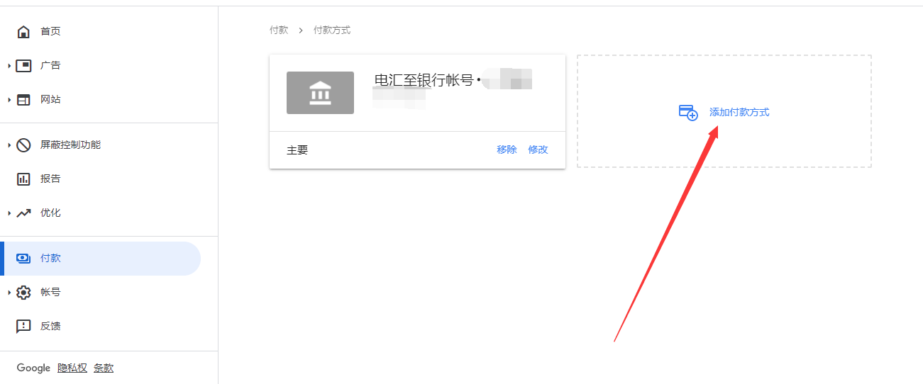 第一步:登录Google AdSense后台,点击付款,再点击管理付款方式