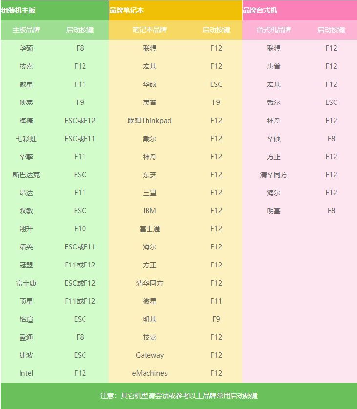 1、当电脑启动以后反复的按快捷键一般是F12,机型不一样快捷键有可能不一样,具体请看下面启动按键列表,之后窗口里面会有几个选择,我们要找到并按上下方向键"↑↓"选择到u盘,然后按回车键进入U盘装机大师主界面。(一般我们选择的时候可以看下其中一个选项是有关USB或者您u盘的品牌的英文名称,那便是我们的u盘了!) 小编整理了各种品牌主板一键进入U盘装机大师的快捷键,我们可以在下面的列表中查找自己相应的主板品牌,然后就可以看到该主板的一键启动u盘装机大师的热键了。