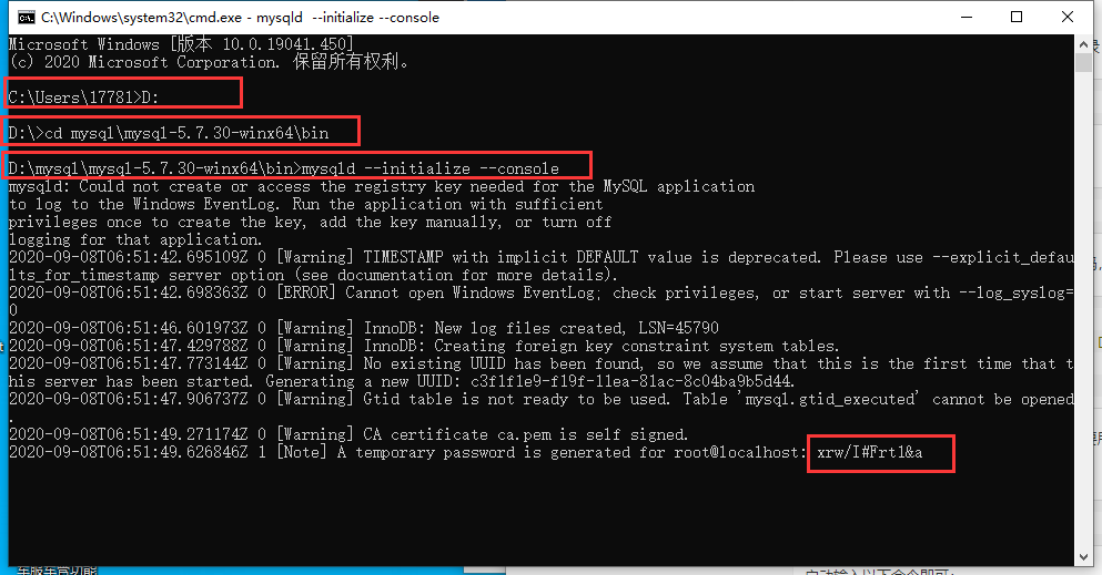 mysqld --initialize --console