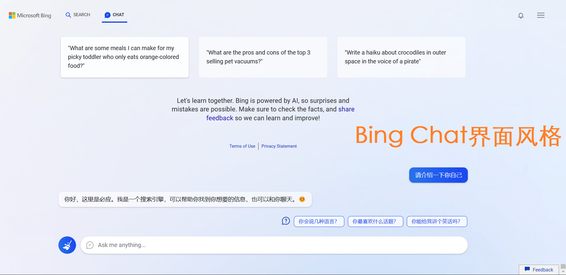 Bing Chat 的核心技术是 Prometheus 模型,据 Bing Chat 介绍,这是一种比 ChatGPT 更先进、更快速的大型语言模型,它可以理解用户的意图,生成流畅、有趣、有用的回答。那么 Bing Chat 和 ChatGPT 有什么不同之处呢?本文将从界面和答案两个方面进行比较。